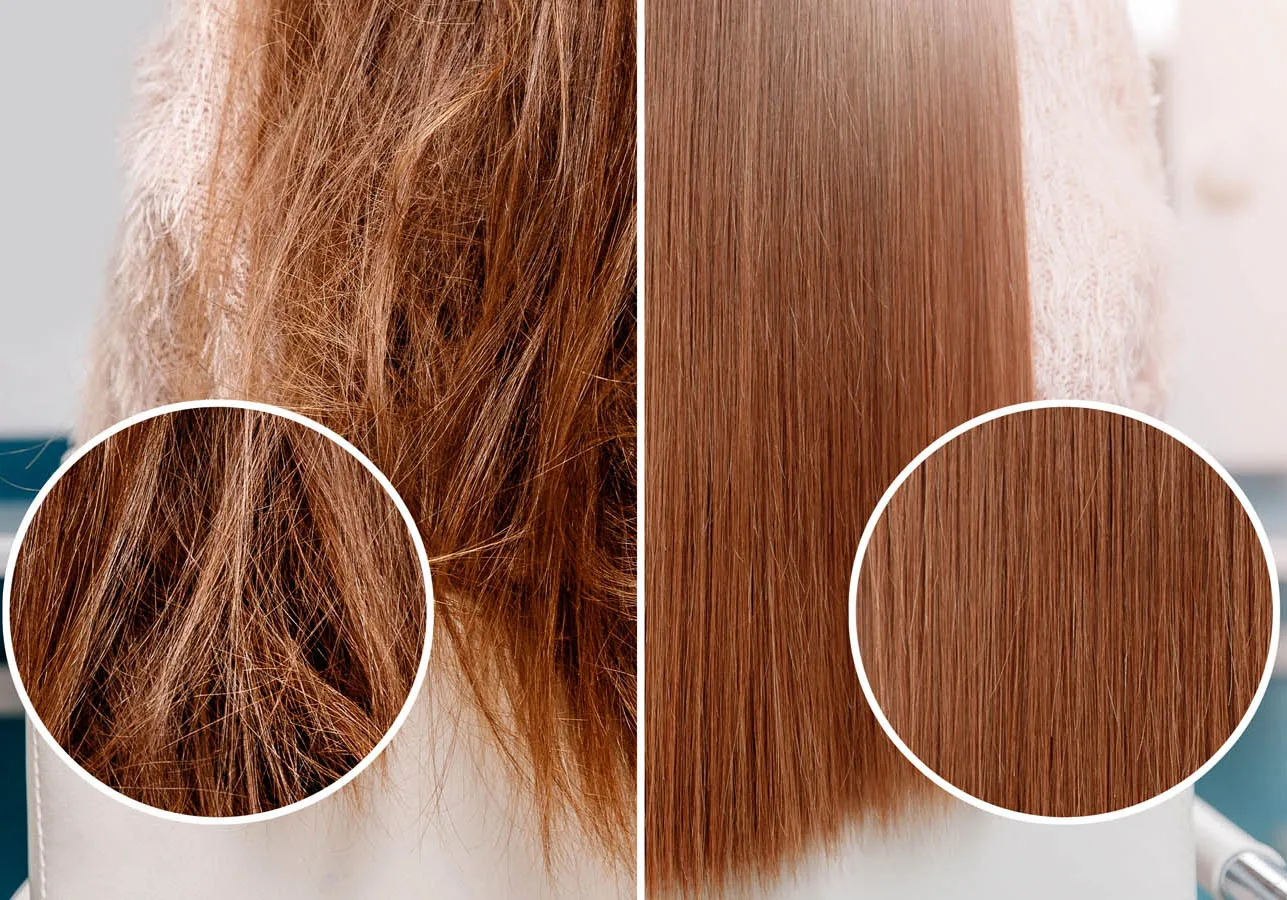 يساعد على تحسين نسيج الشعر وتقوية الشعر الضعيف والتالف والإفراط في المعالجة.