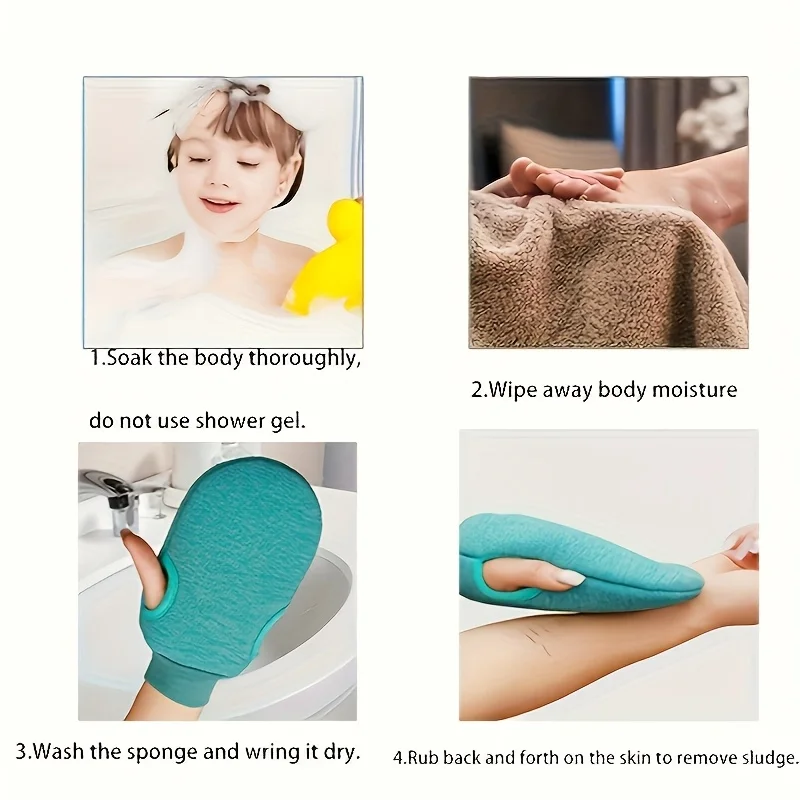 قطعة واحدة من قفاز الحمام المقشر - جهاز تنظيف مزدوج الجوانب للبشرة الناعمة، مثالي لتدليك الجسم والتقشير