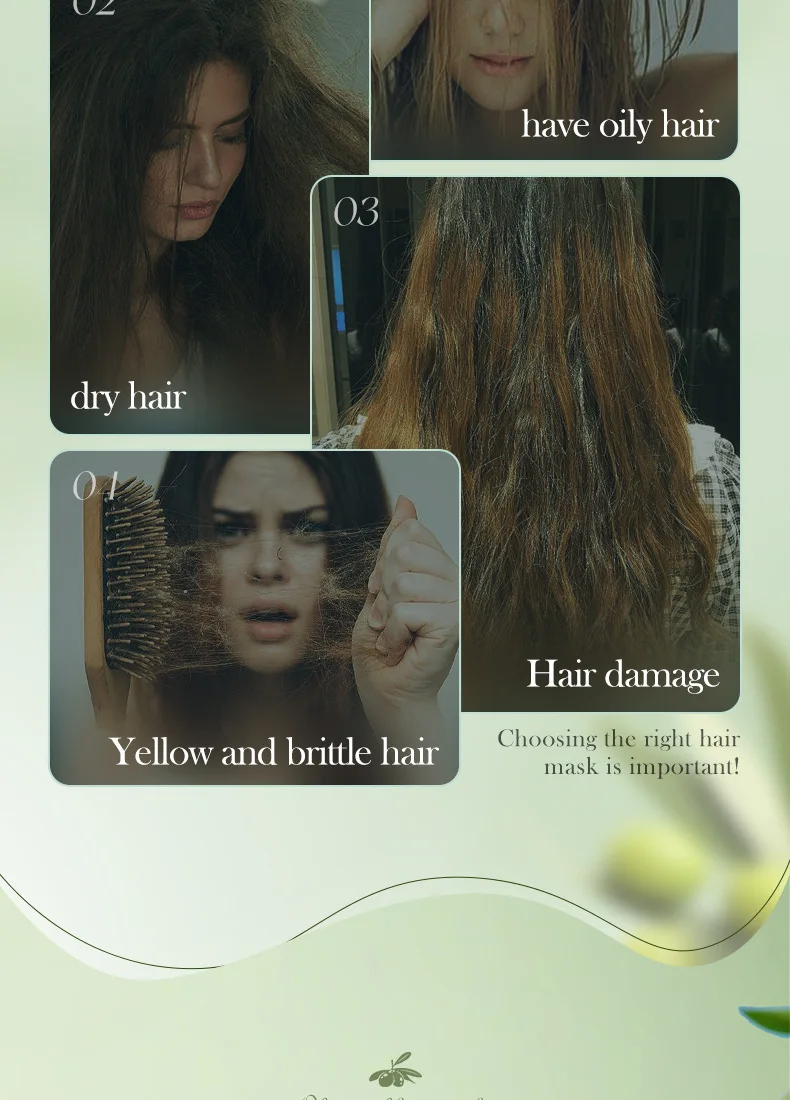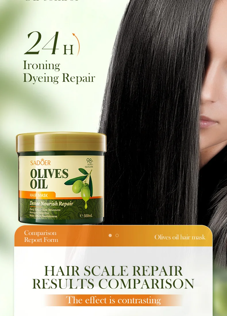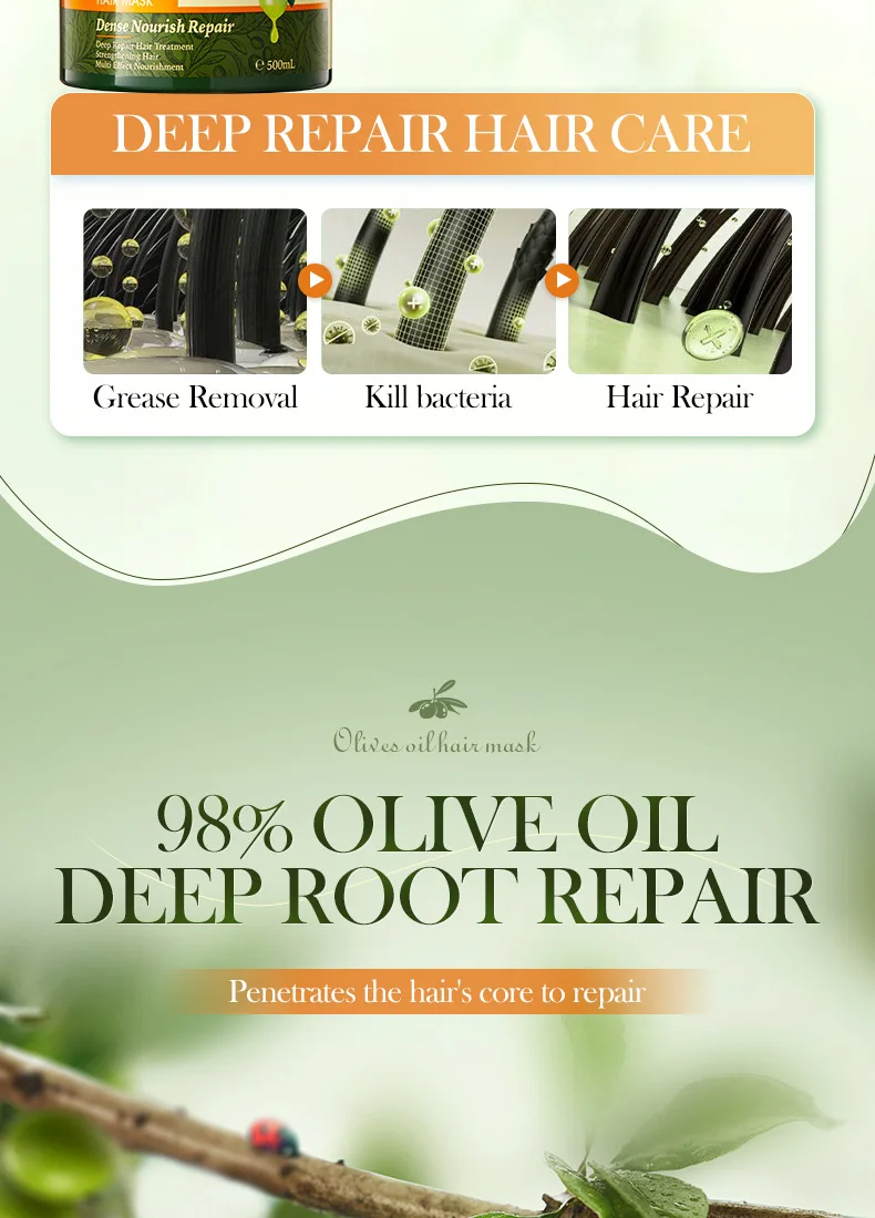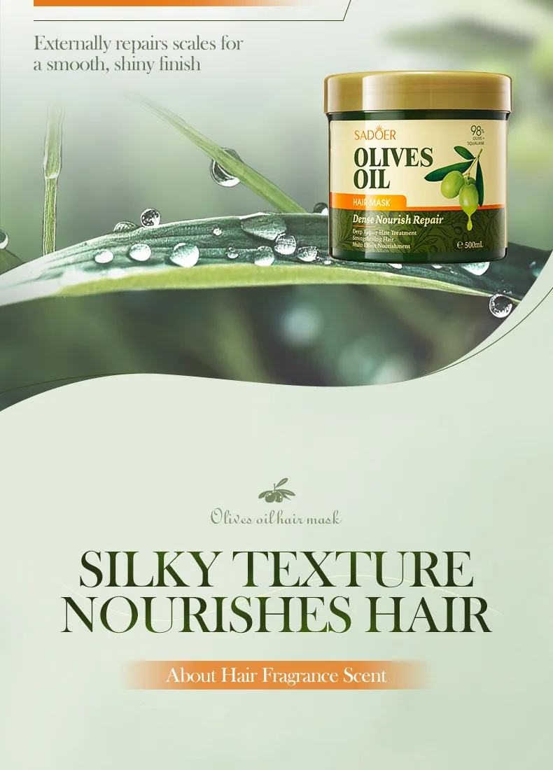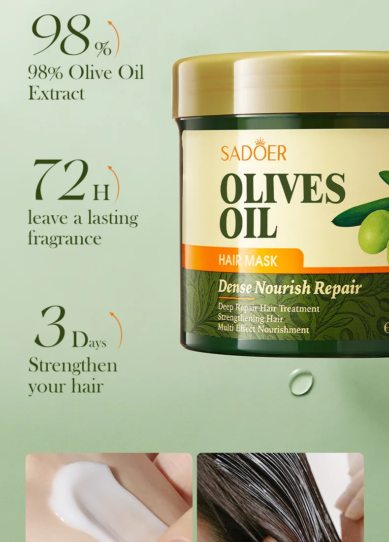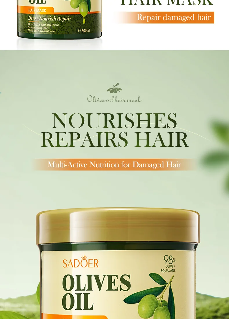 قناع الشعر بزيت الزيتون 500 مل، علاج الشعر، تكييف إصلاح عميق لقناع العناية بالشعر الجاف التالف