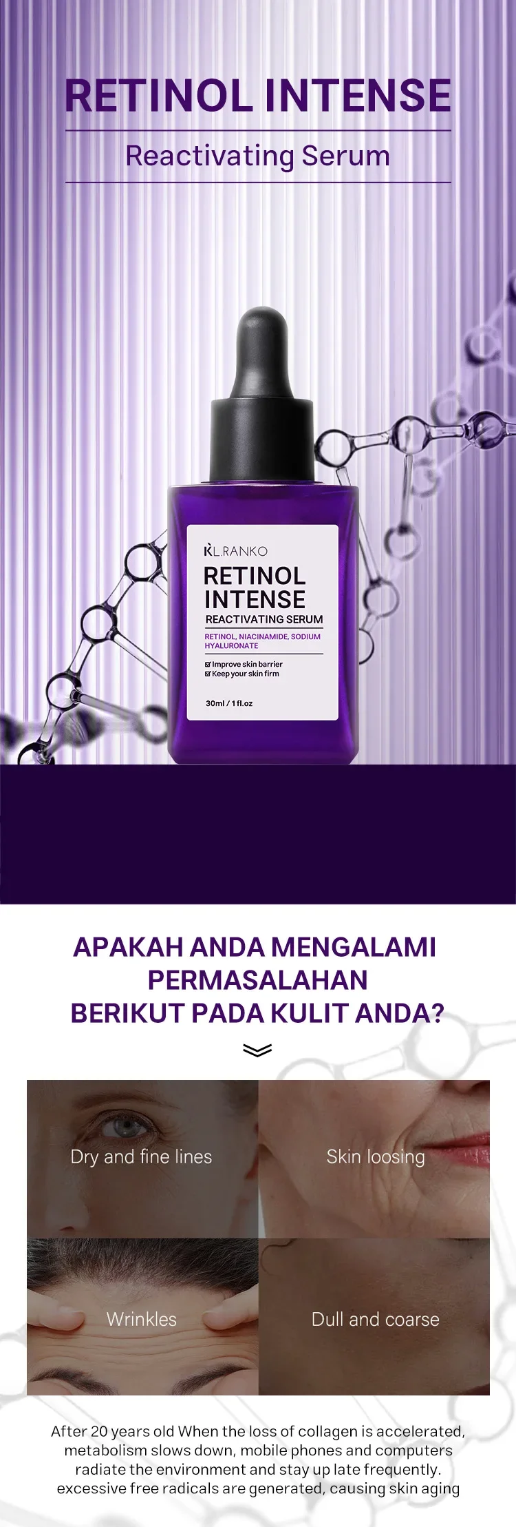 El suero antiarrugas de retinol encapsulado disminuye eficazmente la apparencia de las arrugas profundas y el daño solar.
