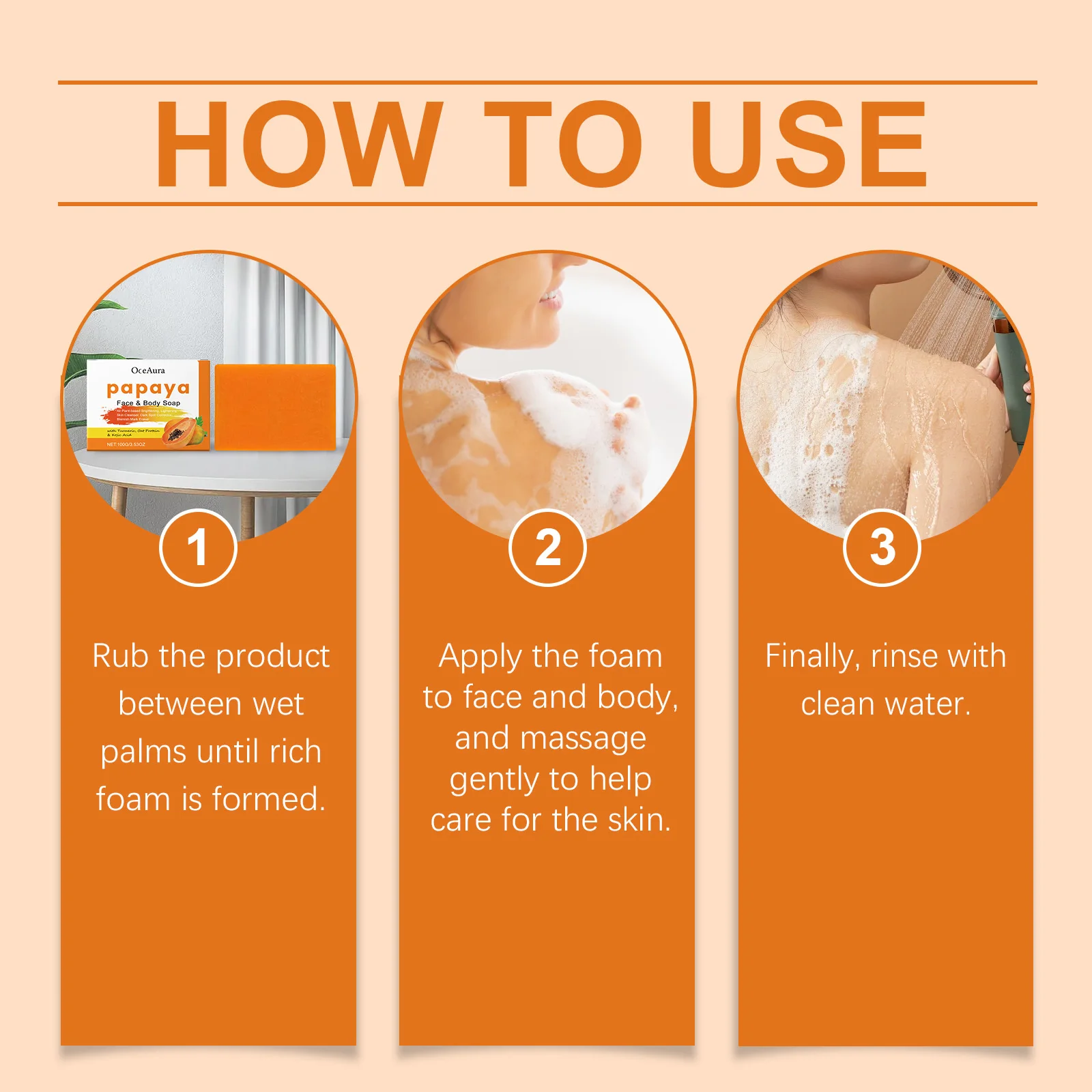 اسم المنتج: صابون تنظيف الكركم البابايا تقشير عميق لفتح المسام عطر طازج ترطيب عميق لطيف اشراق صابون العناية بالبشرة