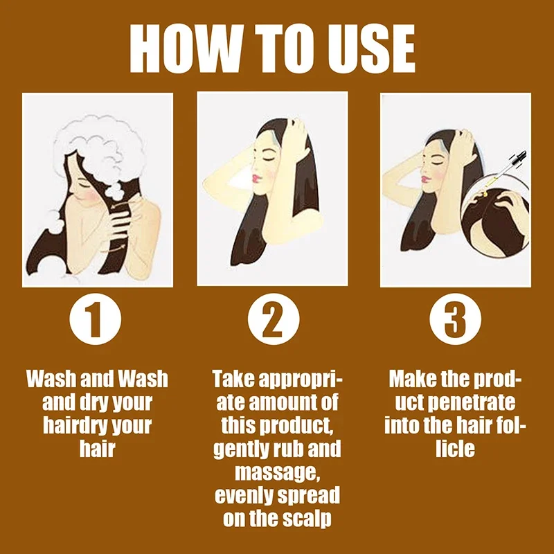 ●1، تغذية الشعر:يوفر زيت نمو الشعر التغذية لشعرك.امنع شعرك من أن يصبح مجعدًا وجافًا للغاية.حافظ على نعومة شعرك.