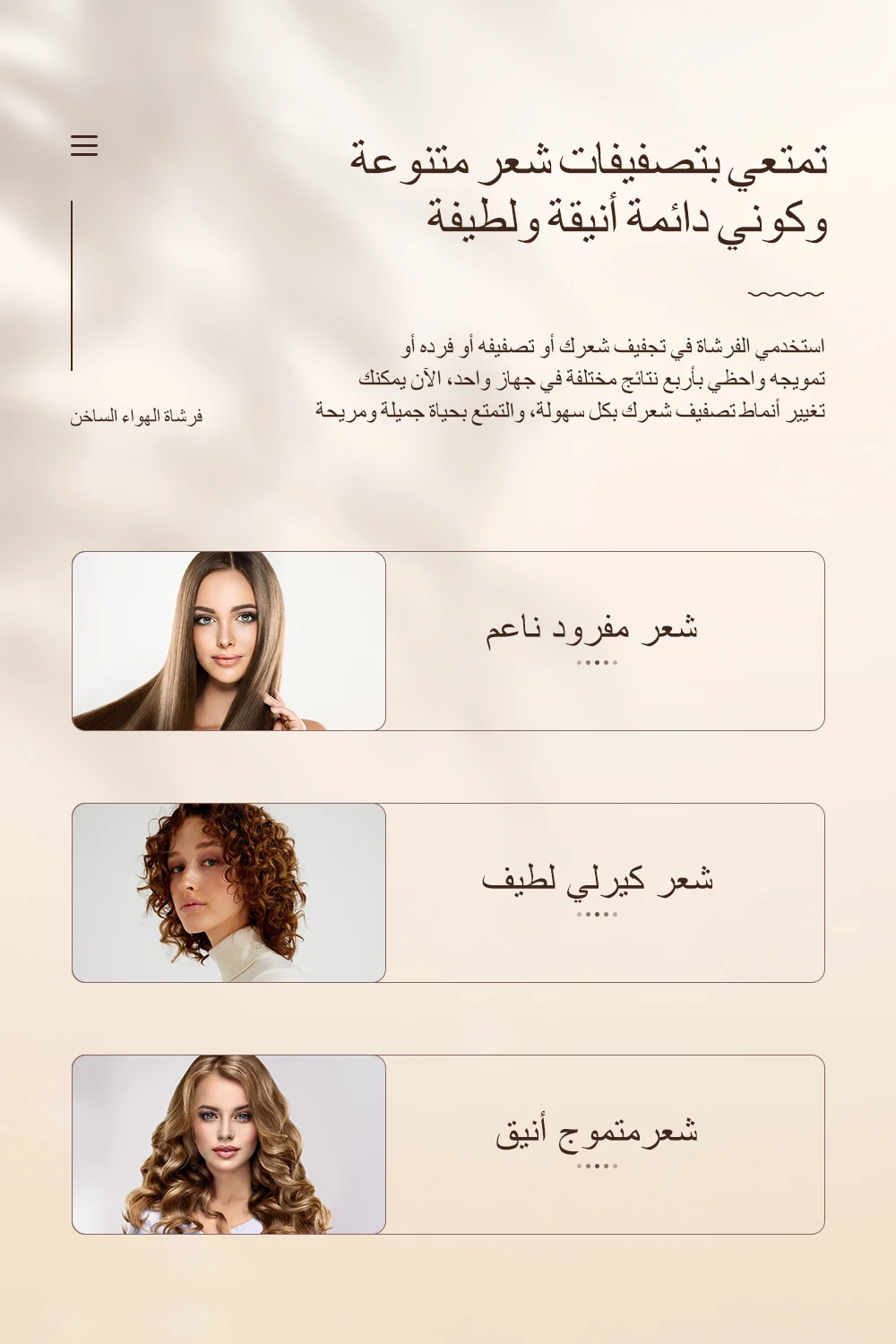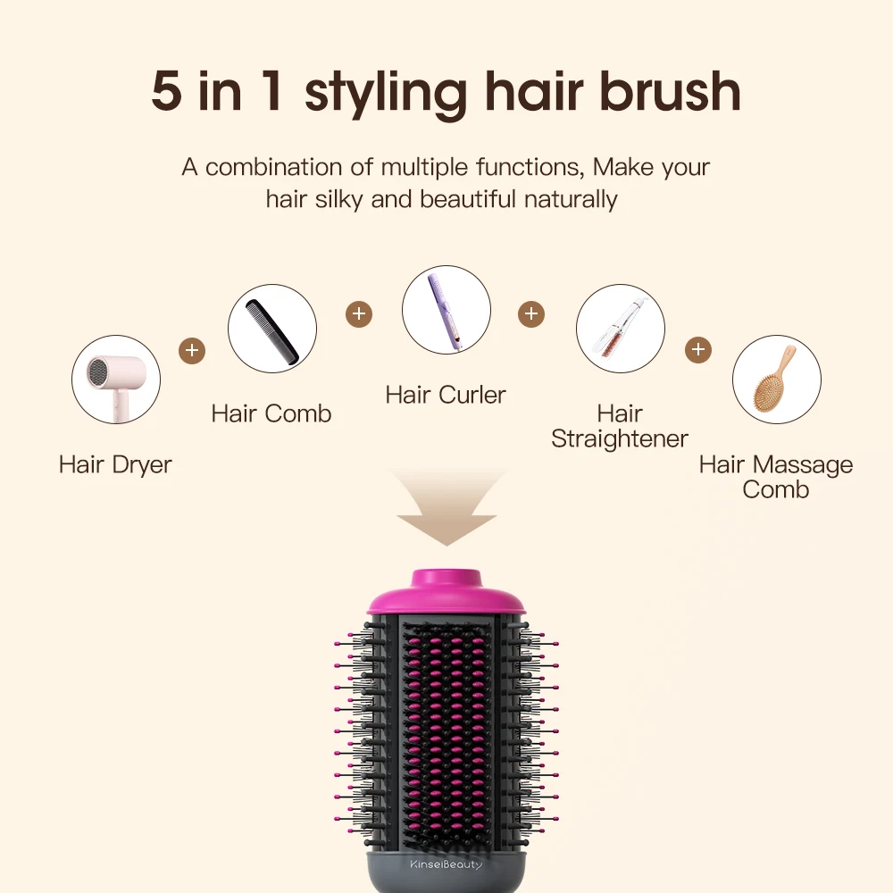 3.يمكن اعتبار فرشاة الشعر ومجفف الشعر بمثابة مجفف شعر صالون ومشط تصفيف (فرشاة هواء ساخن، مشط تمليس، مشط شعر، فرشاة تجعيد، مشط تدليك).