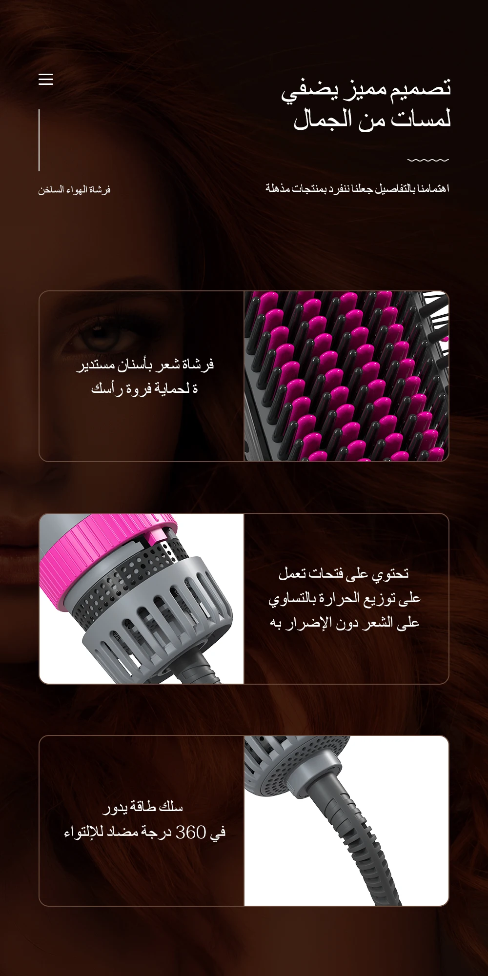 7.360° توزيع الحرارة بالتنفيس، وتجفيف الشعر بشكل أسرع وأكثر نعومة.