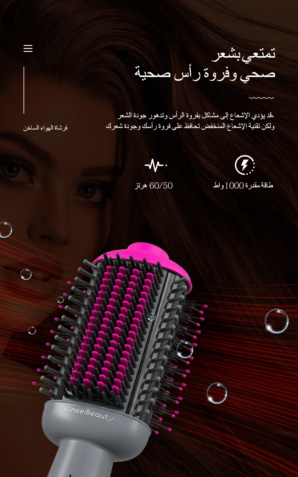 1 يتميز الجزء الأمامي من الفرشاة بتصميم مضاد للحرق، مشط معدني يجعل نتائج الاستقامة أسرع.تقوم تقنية PTC بالتسخين خلال 30 ثانية وتوزع الحرارة بالتساوي، مما يؤدي بسهولة إلى تحويل الشعر المجعد إلى شعر مستقيم.