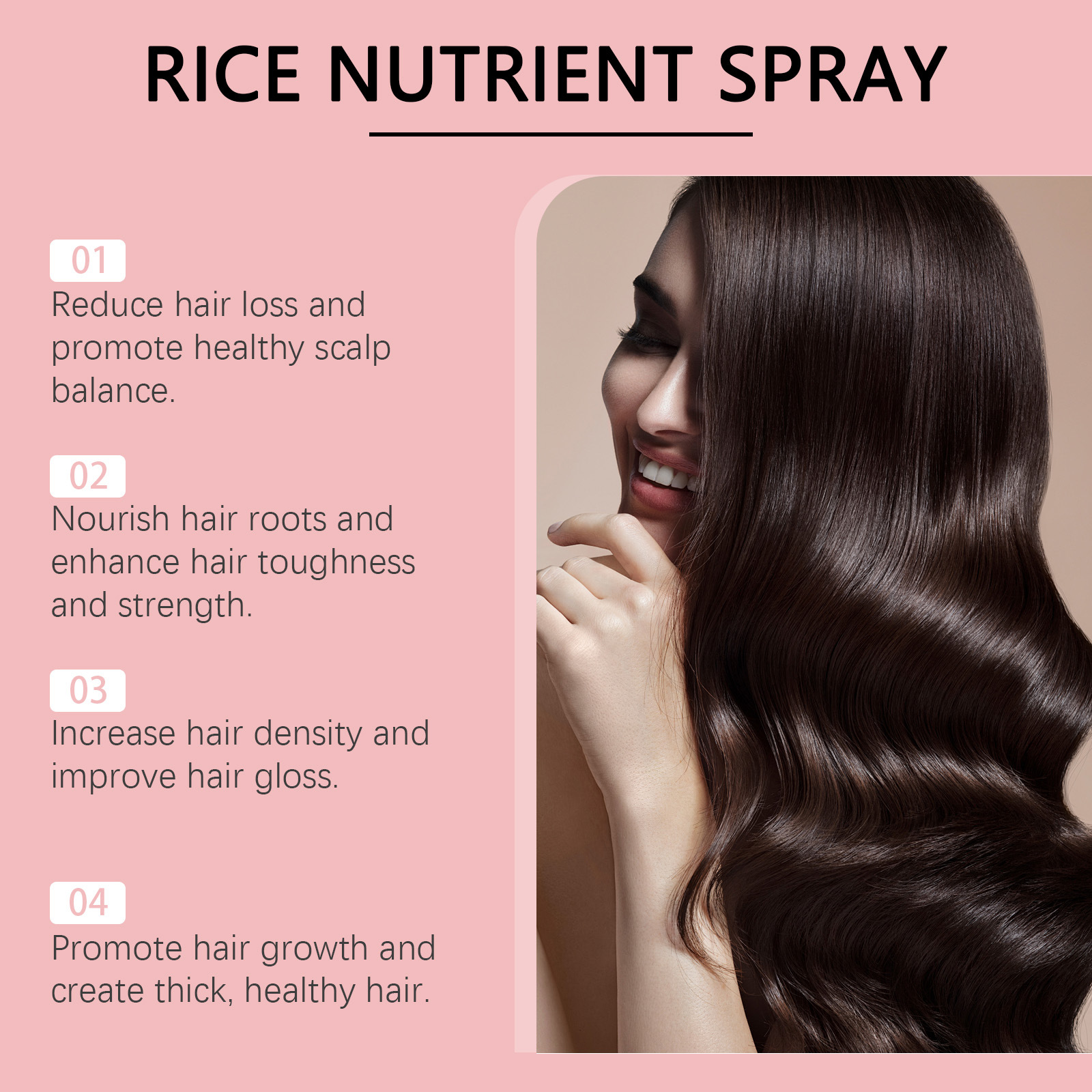 1. بخاخ زيت الشعر بماء الأرز يصلح الشعر ويقوي من الداخل، ويعمل كمصل شعر لتعزيز صحة الشعر، وتعزيز نمو وحجم شعرك.
